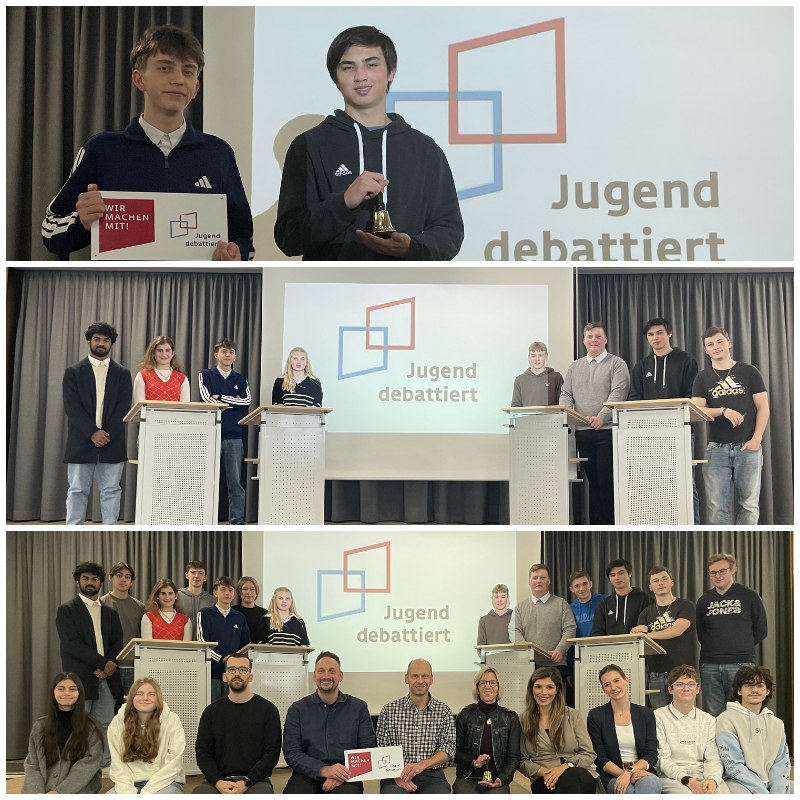 Am vergangenen Donnerstag fand erstmalig das Schulfinale des Wettbewerbs „Jugend debattiert“ am Hermann-Billung-Gymnasium statt. Nach drei vorbereitenden Methodentagen im Oktober, die dazu dienten, allen Interessierten in lockerer Atmosphäre mittels verschiedener praktischer Übungen die Welt von „Jugend debattiert“ zu zeigen und sich Schritt für Schritt auf eine erste Trainingsdebatte vorzubereiten, traten im Schulwettbewerb anschließend insgesamt acht KandidatInnen in zwei verschiedenen Debattengruppen gegeneinander an.